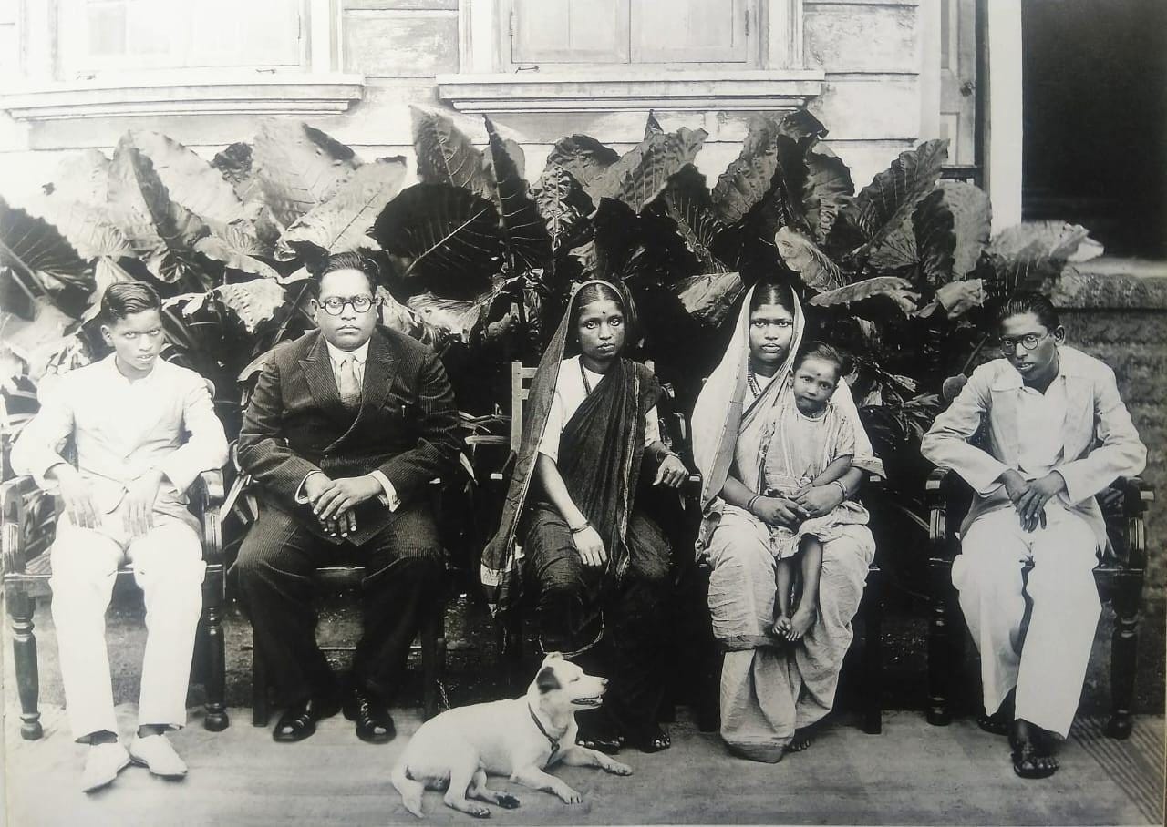 Let us meet Tobby first. There are two accounts related to him or her. On the one hand, it is generally suggested that this fox terrier dog named Tobby stayed with Dr. Ambedkar at Rajgruha during the late 1920s and early 1930s. We can even find the picture of this dog in the family photo of Dr. Ambedkar in 1934, which I share below: